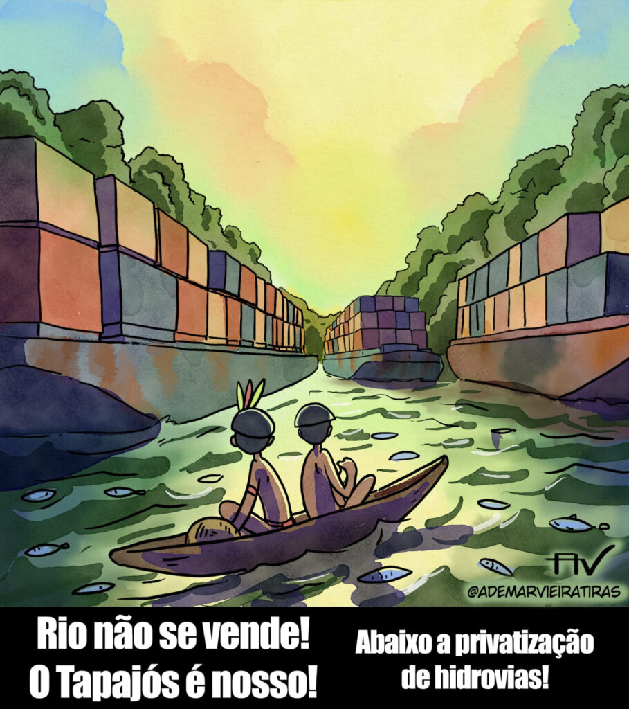 Artistas da região Norte decidiram ocupar outro território de disputa: o imaginário. A partir do traço, da cor e da linguagem dos quadrinhos, 15 criadores amazônidas lançaram uma mobilização artística contra o Decreto 12.600/2025, que trata da privatização dos rios Tapajós, Madeira e Tocantins. A iniciativa, organizada pelo coletivo Norte em Quadrinhos, fortalece a mobilização iniciada no dia 22 de janeiro, em Santarém (PA), onde povos indígenas, ribeirinhos, ativistas e movimentos sociais ocupam a unidade da Cargill e reivindicam a revogação da medida .